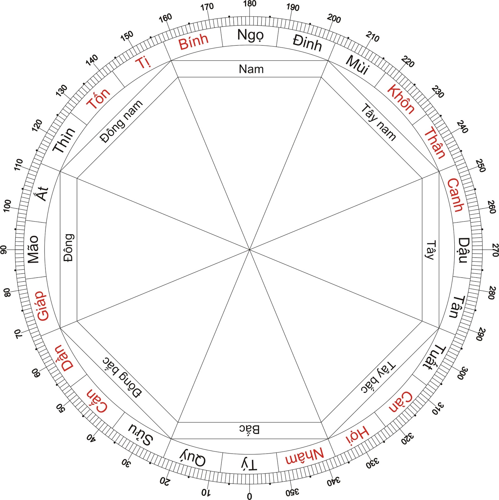 Thậm chí các cung này còn được chia nhỏ thành 5 độ, 3 độ để chi tiết hóa không gian.