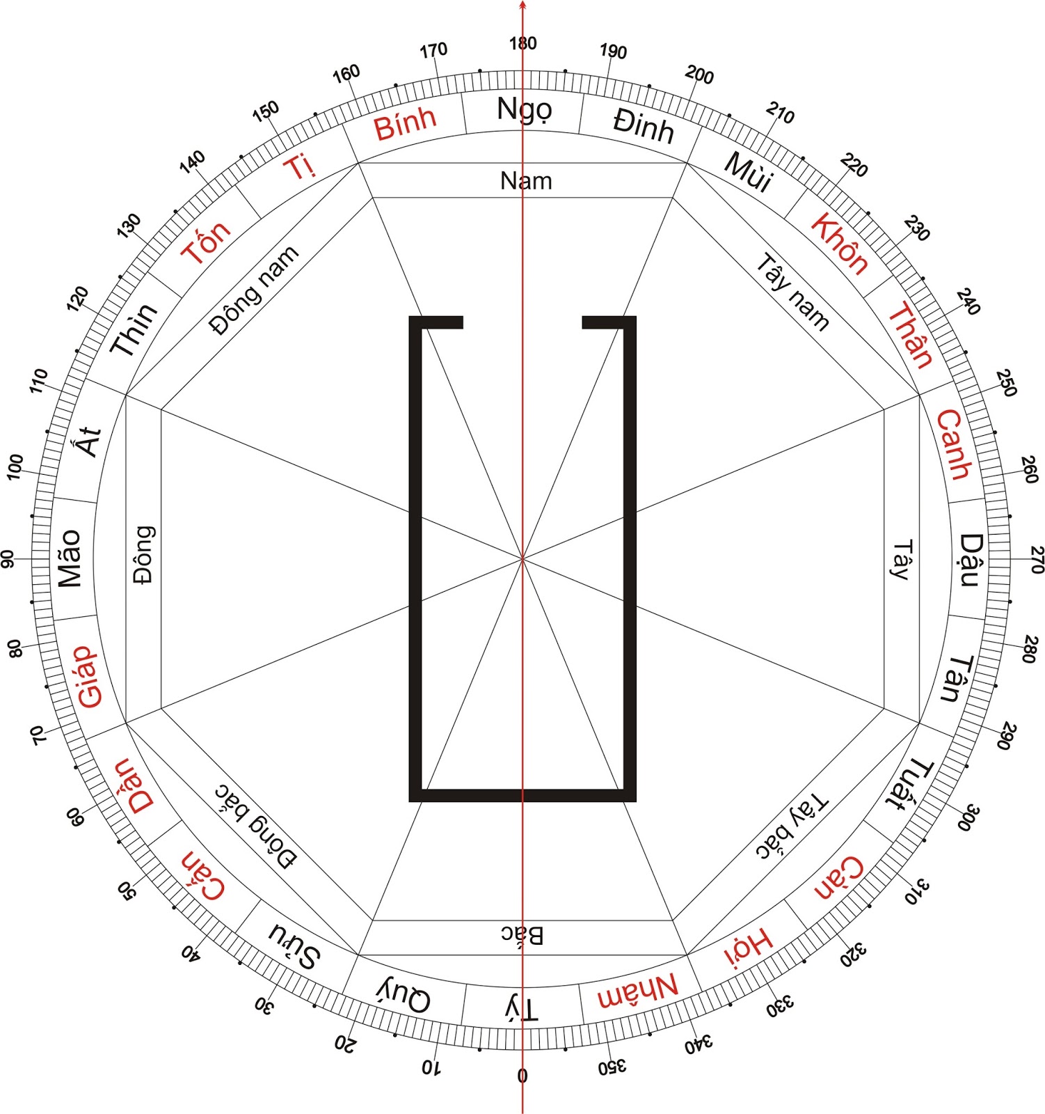 – Hướng nam có cung Bính, Ngọ, Đinh