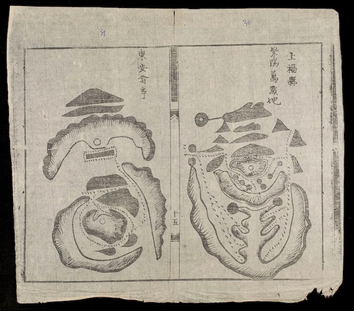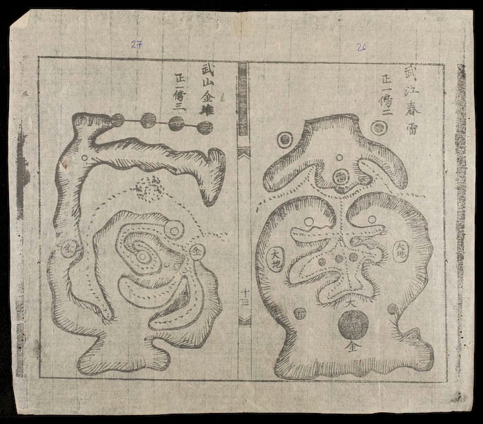Sách Cao Vương Chân Truyền Địa Lý Đồ Chân Long Huyệt, thác danh do Cao Vương (tức Cao Biền) truyền lại. Đầu sách là bản đồ phong thuỷ nói là của 54 huyệt đất tốt ở xứ Kinh Bắc (các huyện Hiệp Hoà, Đông Ngàn, Vũ Giàng…). Tiếp đến là các huyệt đất tốt ở xứ Sơn Nam (các huyện Thanh Trì, Thượng Phúc, Thanh Oai…), Sơn Tây (các huyện Từ Liêm, Lập Thạch, Thạch Thất, Bạch Hạc…), Hải Dương (các huyện Đường Hào, Cẩm Giàng…), Nhị thập tứ mạch lai long luận pháp 二十四脈來龍論法, Thi vân 詩雲: Bài thơ nói về đạo đức và bí quyết của thuật địa lý phong thuỷ, Địa lý chính tông gia truyền bí pháp 地理正宗家傳祕法, Tứ ngung luận 四隅論, Thần chú 神咒…”