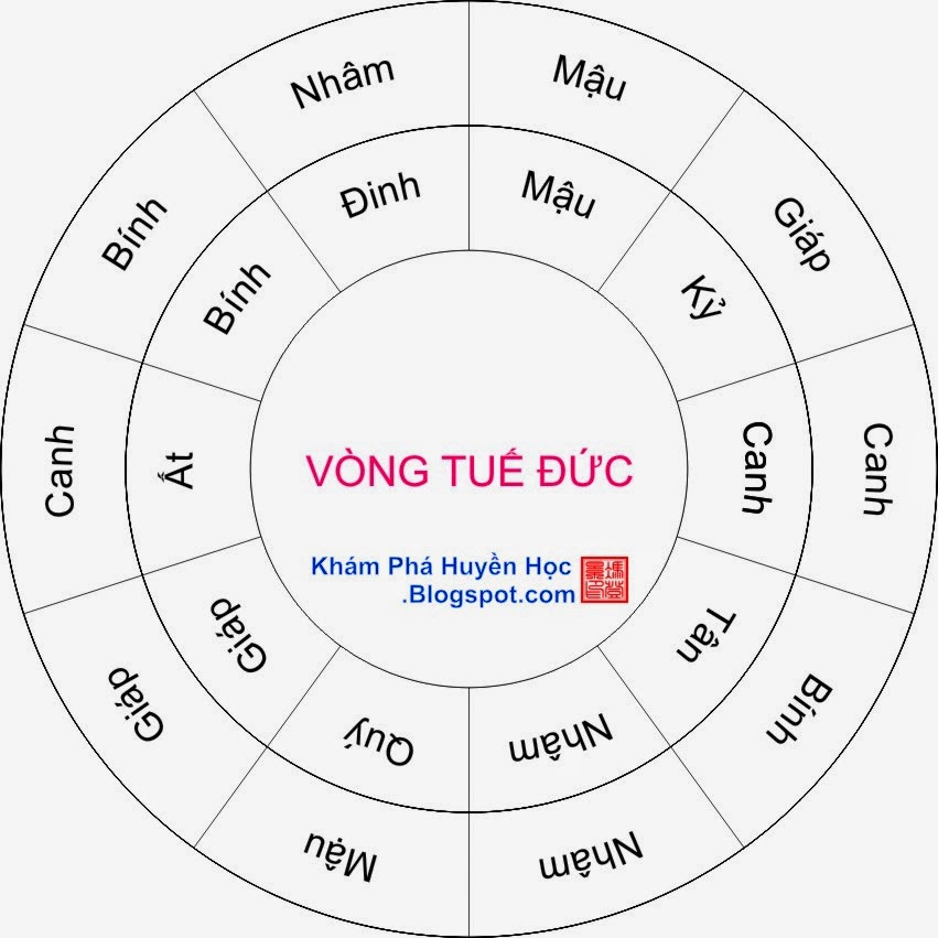 Tuế Đức được tính theo thiên can của năm đó. Thiên Can có năm ngôi dương là Giáp, Bính, Mậu, Canh, Nhâm. Cùng với năm ngôi âm là Ất, Đinh, Kỷ, Tân, Quý. Trong quan hệ quân thần, vua tôi thì dương là quân, âm là thần…Ở Thiên Can cũng vậy, can dương là quân, can âm là thần. Và trong mối quan hệ đó thì tất nhiên thần phải theo quân. Quân tự mình có cái đức làm vua nên trong năm can dương của Thái Tuế đều lấy đức tại chính bản thể của nó vậy. Cho nên: