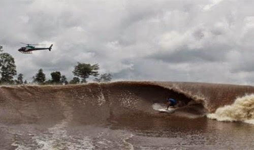 Hai lần một năm, khoảng giữa tháng hai và tháng ba, vùng biển Đại Tây Dương lại “phẫn nộ” tạo sóng cuồn cuộn lên sông Amazon , Brazil , tạo ra làn sóng dài, vĩ đại nhất trên Trái đất.