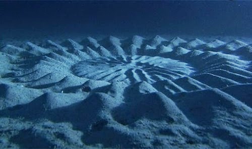 Trước tiên, chúng bơi dưới đáy biển theo vòng tròn vài giờ đồng hồ, sau đó dùng vây vẽ nên những đường rãnh chỉ bằng một động tác giống nhau. Tất nhiên, mục đích chính của việc làm này là thu hút bạn tình.