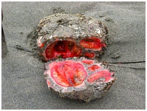 Nếu bạn dạo chơi dọc bờ biển Chile hay Peru, bạn sẽ thấy rất nhiều hòn đá cuội, những ai không biết sẽ chẳng mảy may quan tâm, thế nhưng nếu có ai đó xẻ nó ra làm đôi, có lẽ bạn sẽ không tin vào mắt mình khi từ những hòn đá này có những dòng máu đỏ tươi chảy ra, nhiều người sẽ rùng mình khi biết đây là những sinh vật sống.